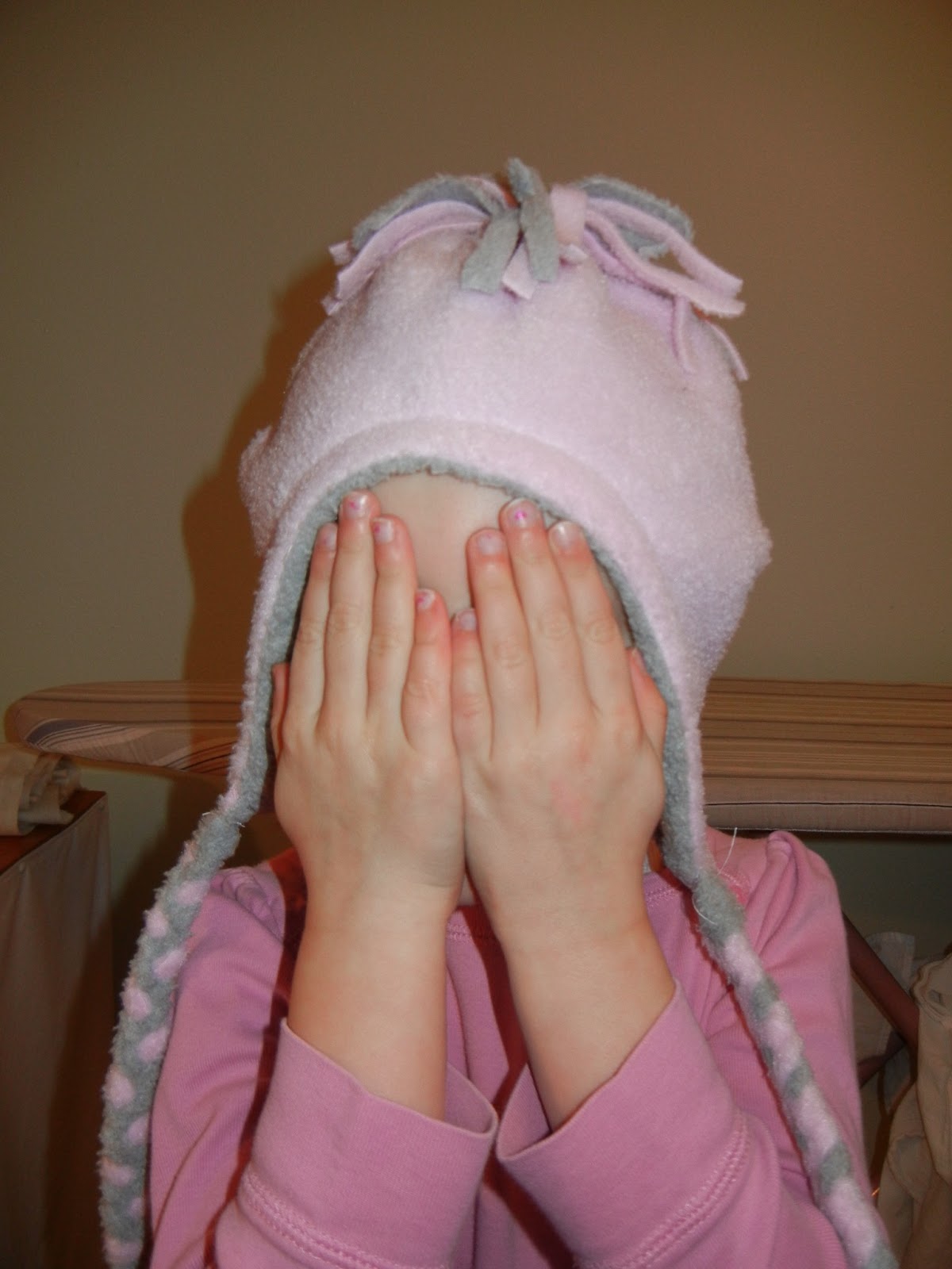 I'm a bit squeamish about posting the girl's faces online so that leads to difficulties when photographing hats. We made it work, although Grace asked if she had to smile for the picture behind her hands. :)